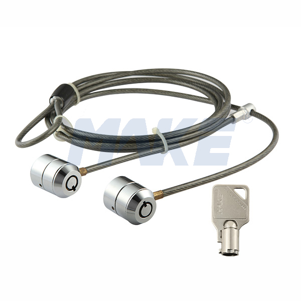 型号:MK806B 材质:铁,塑料,锌合金,不锈钢 表面处理:喷粉、喷漆、亮镍、包胶 钥匙牙花:10000以上 适用范围:台式电脑,笔记本,投影仪等多媒体设备 特点: 1、锁头、缆绳、搭