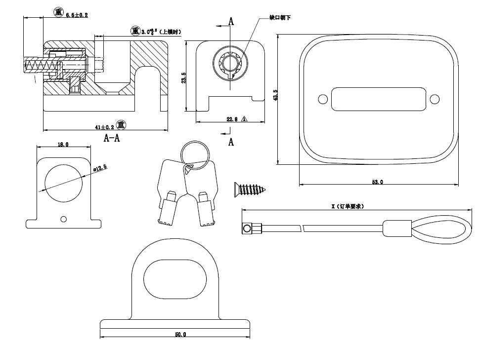 锁头、缆绳、搭扣等各附件可选择搭配