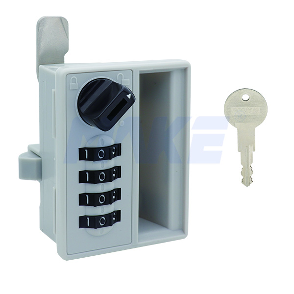 美科寄存柜锁四位机械密码锁MK706,,搭配万能管理系统,独特的设计,可快速找回密码,也可用管理钥匙应急开锁。此款锁具安全系数高,侧面带把手,安装便捷,用在各种金属柜和塑料柜,所以又称为寄存柜锁,储物柜锁,更衣柜锁,桑拿锁等。