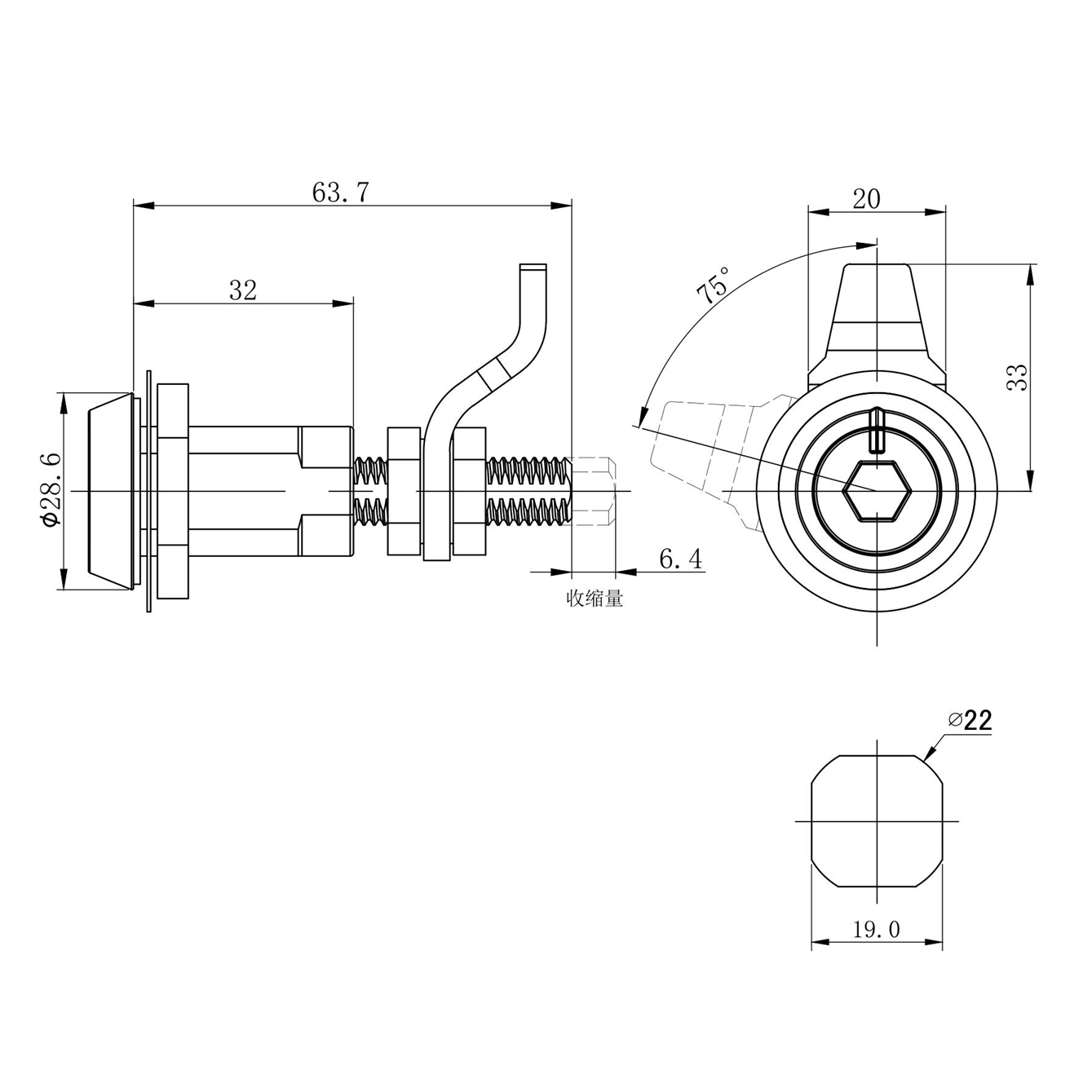 3、 拉紧行程6.4mm