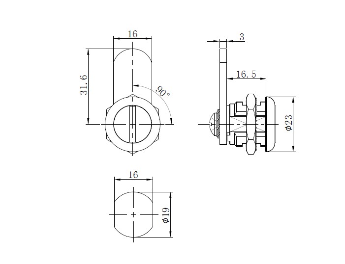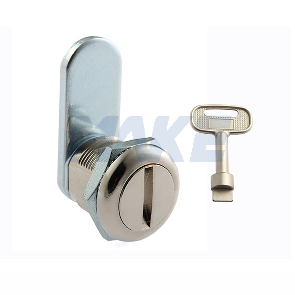 美科机箱机柜锁MK407-7,锌合金材质,直舌片,带一字型钥匙,向右旋转90°即可上锁,操作方便,常做为广告箱锁,配电箱锁,电表箱锁,广告机锁等。