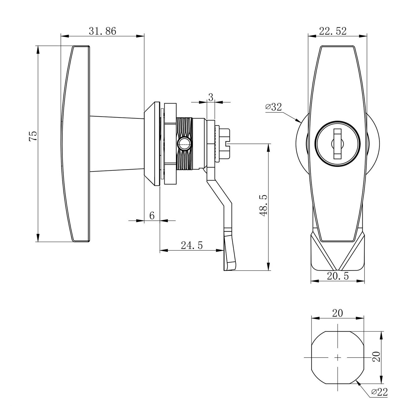 ●产品介绍 美科把手锁执手锁MK405-1,采用锌合金材料,配备高安全性雕刻钥匙系统,T型把手设计,折弯舌片,多种表面处理可选,外形相对较小,操作方便快捷,深受用户喜爱。常成为金属柜锁,配电箱锁,服务器锁,工具箱锁等。