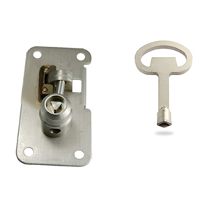 ●产品介绍 美科机箱机柜三角锁MK908-5,不锈钢材质,折弯舌片,带三角型钥匙,电解抛光和拉丝表面处理,安全性高,适合在户外使用,常做为轿厢锁、配电柜锁、户外机箱锁等。
