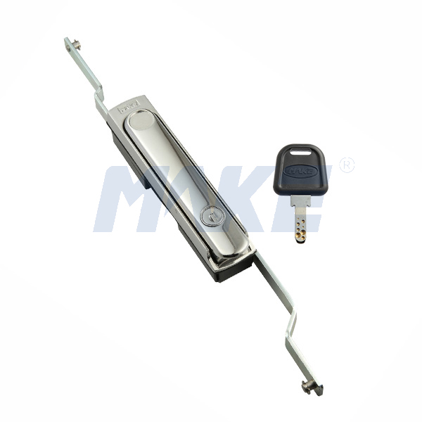 ●产品介绍 美科连杆锁 换电柜锁 MK401,是一款常用的重型把手锁。采用锌合金材料制作而成,表面镀铬设计,金属色外观,配备双面弹子钥匙系统,开锁体验顺畅,操作便捷。常做为充电桩锁,通讯柜锁,电表箱锁,配电箱锁,广告机锁、换电柜锁等