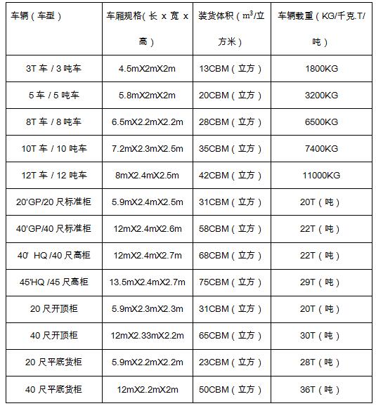 2.以下表格主要是香港和澳门常用吨车和货柜车: