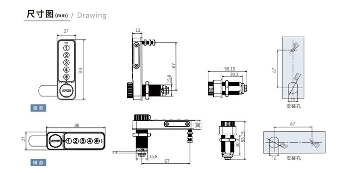 2.替换传统锁具该锁采用标准16*19mm安装孔,可替换传统锁具,节省换锁费用。