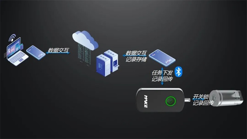 MK-E225是通过APP连接锁具和电子钥匙,实现开关锁。