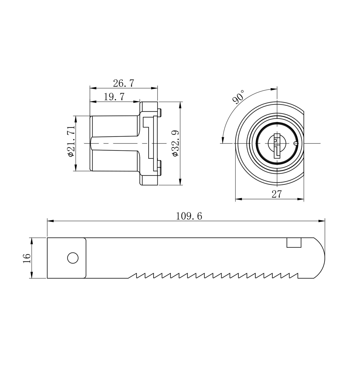 美科文件柜锁抽屉锁舌片锁MK104-33,锁具较长,带齿,是贝博艾弗森官网 常见的家具用锁,主要可作为玻璃门锁,窗户锁,橱窗玻璃门锁等。