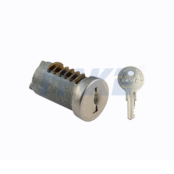 美科小尺寸锁芯MK104-42,配备排片钥匙系统,锌合金材质,自带防尘盖,适用范围广泛,常做为金属柜锁,保险箱锁,广告机锁,寄存柜锁,工具箱锁等。