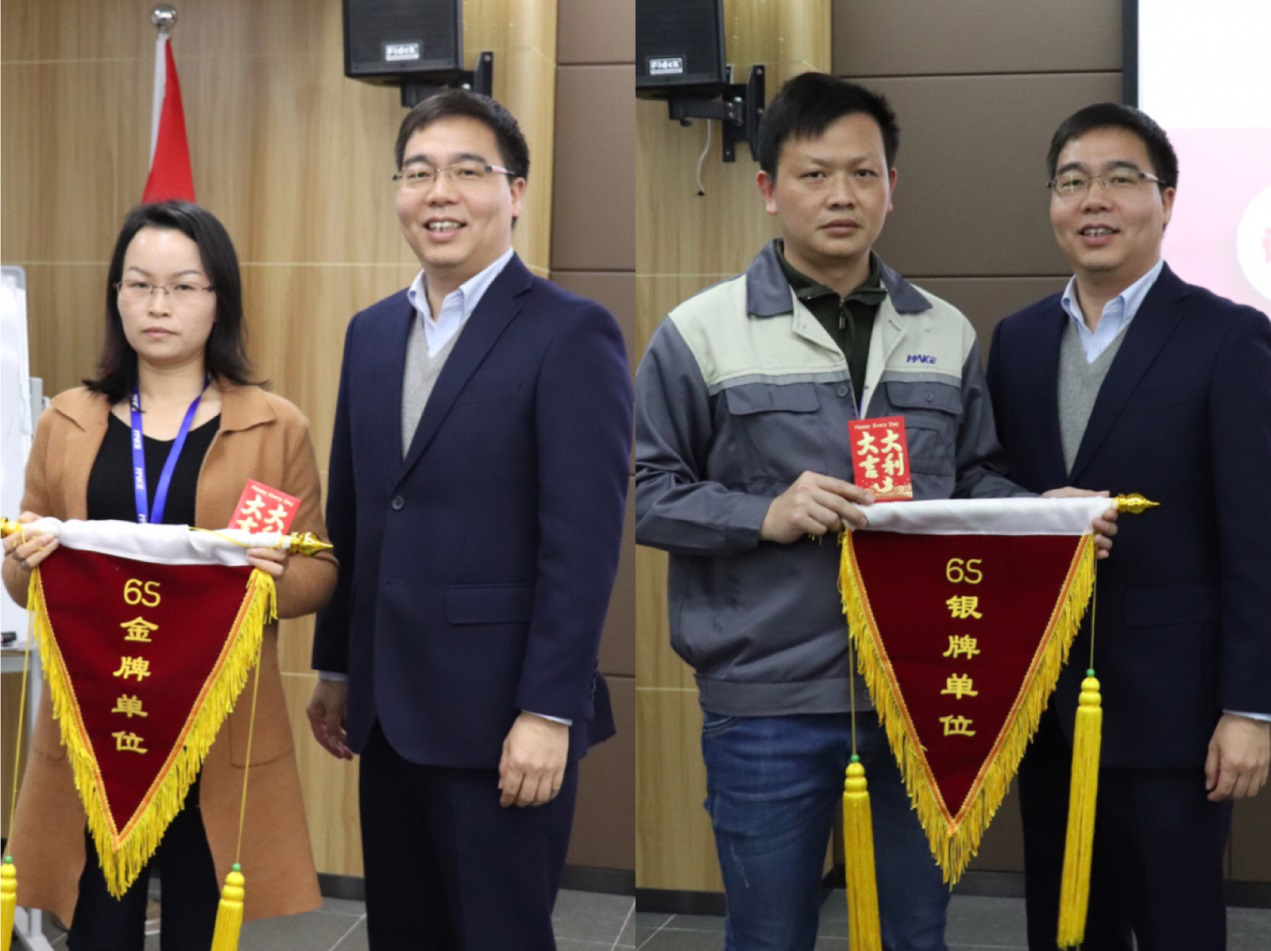 大会最后,公司对18年12月6S评比的金牌、银牌获奖团队予以表彰,林总亲自颁奖。制造车间的C3车间获得了6S金牌单位,A1车间过得了6S银牌单位。办公区域的财务中心和生产办公区并列第一,分别获得了6S金牌单位。