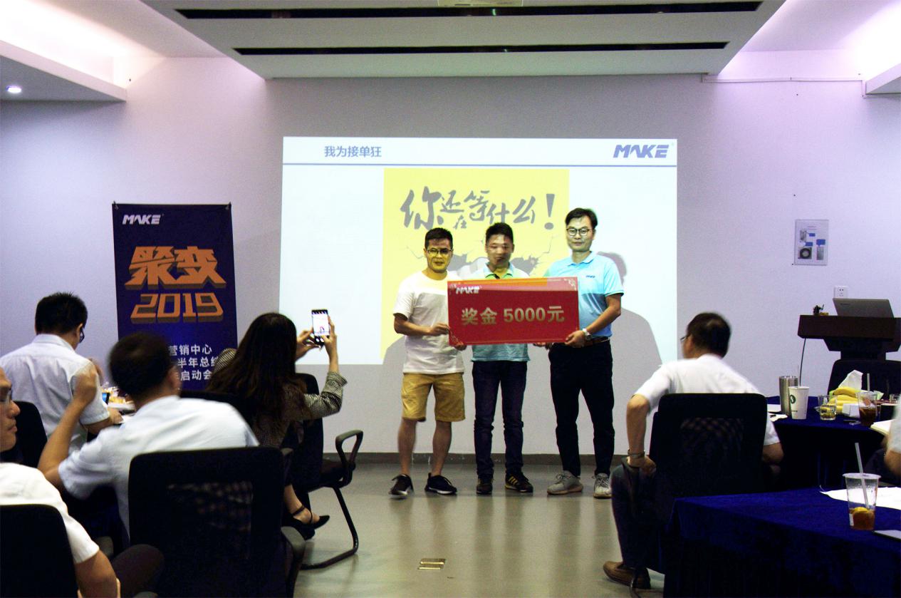 会议在亢进有力的音乐中来到了尾声。业务就是用数据说话。林总和谢总分别为超额完成目标的小伙伴们颁发激励奖,希望他们继续努力,做好领头羊的表率作用。
