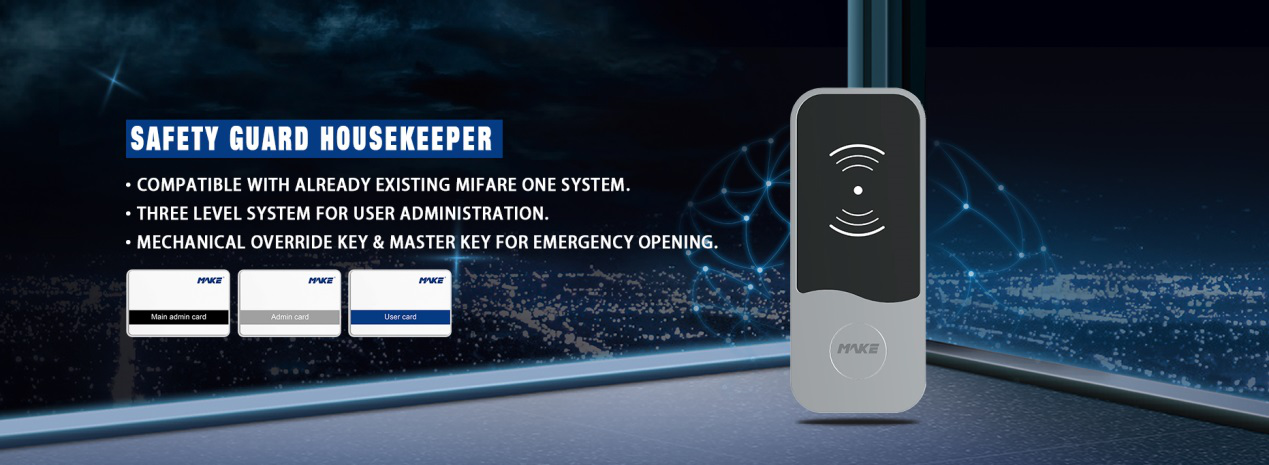 美科的RFID电子感应锁引用先进技术,成品经过全球市场的层层检验,无论从材质和结构上,还是安全密钥上,安全性都非常高。锁体带自动锁死功能,用户卡开锁3秒内无操作自动锁死,经理卡开锁到配置结束超过3秒也将自动锁死。另外,还有各种警报功能,会提醒误操作或危险行为。盗窃者无法撬门而入。
