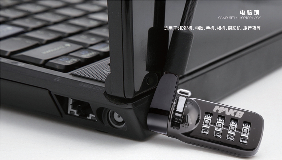 电脑锁除了适用场景多,适用的设备范围也很广。平板电脑、投影机、摄像机、相机等,都有预留给电脑锁的安全锁孔。携设备进行户外工作,或者在为大众提供便利服务的公共场合,电脑锁都是能让人们更放心的一个必需品。