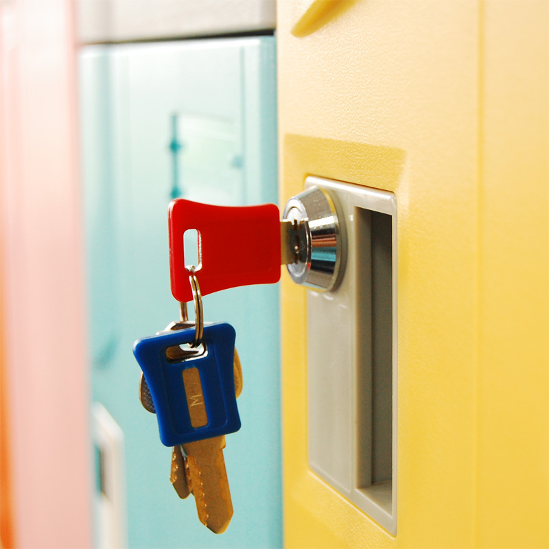 1、转舌锁。转舌锁是日常生活中比较常用的一种锁具,操作简单便捷,性价比比较高,可以配置管理员钥匙以及换锁芯钥匙,在不损坏书包柜和锁体的情况下,学生遗失钥匙也可以打开柜门并更换锁芯。