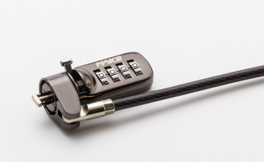 与其他笔记本电脑锁不同,MAKE电脑锁密码锁MK815-5,是一款安全系数很高的四位电脑密码锁。这款锁密码轮转动顺畅,安装方便快捷,用户只需要通过简单四步就可进行密码重设。MK815-5还可使用钥匙和密码双重加密,锁头、缆绳、搭扣等各附件可选择搭配,使得笔记本电脑锁的安全性大为提高,深受用户喜欢和信赖。随着笔记本电脑越来越薄,MAKE电脑密码锁还及时根据市场需求进行调研、改进,目前已生产出小直径达10mm的高端电脑锁,被誉为电脑锁中的“苹果”。这种笔记本电脑锁由于体积较小,重量轻,因而携带十分方便,是您在出差、旅途过程中保护笔记本电脑安全的选择。