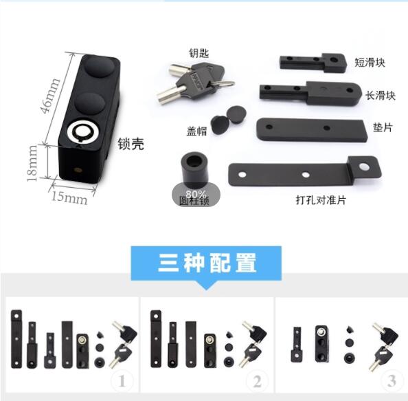 这种安装方式在窗扇底部安装一个类似插销的锁具,在窗户下边框的内窗轨上打上孔实现窗户打开位置的限位。通过窗户锁的使用,实现防盗和限位开启的功能。