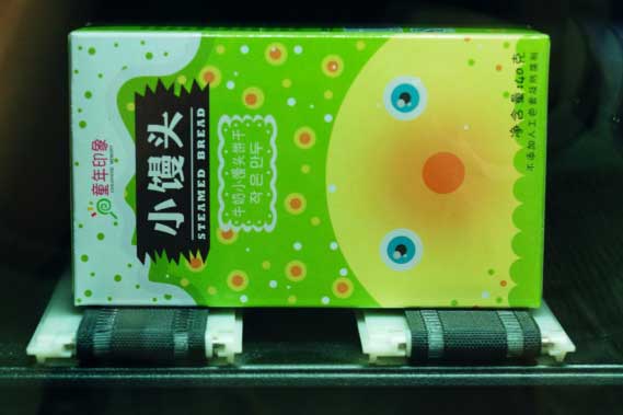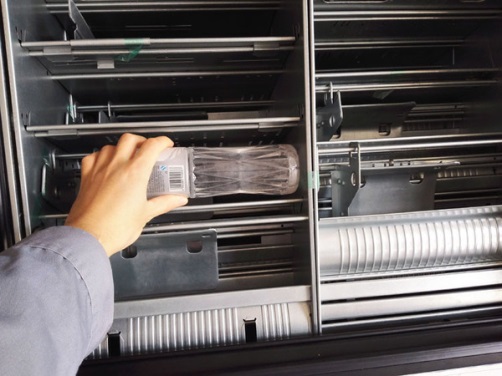 履带货道可以说是弹簧货道的一个延伸,约束比较多,适合售卖有固定包装、不容易倒的产品。经过和设计好的保温控温杀菌系统配合,履带货道自助售货机可以用来卖水果,生鲜和盒饭。