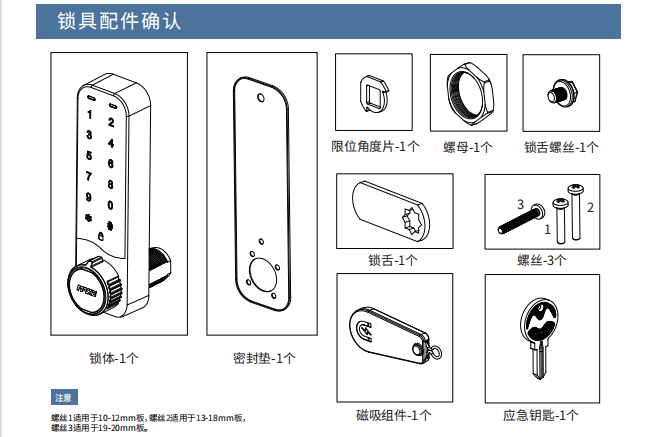 在钻孔之前,需要确认一遍锁具的配件是否齐全,以防止安装后期出现零件缺失、遗漏等情况。