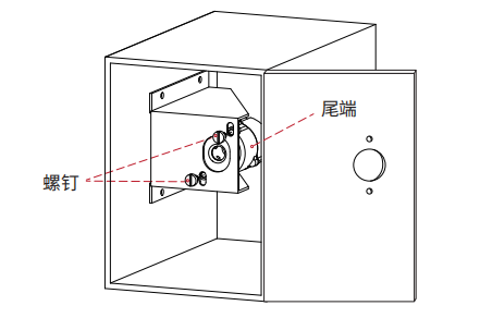 美科智能售货机锁分为前端和尾端。在安装时,首先将锁具尾端及螺钉对准相应的安装孔后,顺时针旋紧螺钉,将尾端固定在内部安装板上。