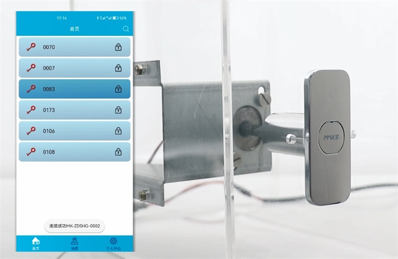 美科智能自助售货机锁蓝牙版,融合5G+蓝牙技术,通过蓝牙信号传输实现锁具与手机之间的智联互通。