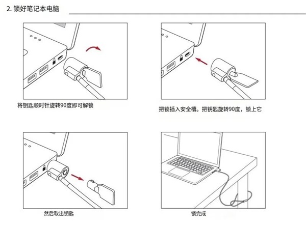 在使用时,只需转动钥匙即可解锁或锁定电脑。