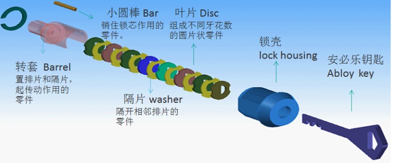 从中可见,安必乐锁开锁前需要空转90来契合顶片和隔片实现并靠钥匙转动实现开锁。