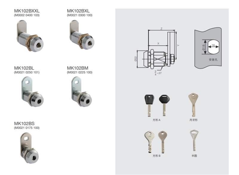 另外,安必乐锁零部件不受材料限制。可根据应用场景需求强强组合不同材质制成零部件,提升防撬性能。例如MK102B系列,锁壳由锌合金/铜制成,锁芯和钥匙由铜制成。