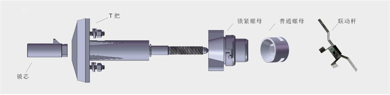 可选三种螺母:普通螺母,锁紧螺母和联动杆。其中锁紧螺母带三头弹性螺纹,上锁后可旋转增加密封性;联动杆和锁舌搭配一起控制锁具闭合,增强牢固度。