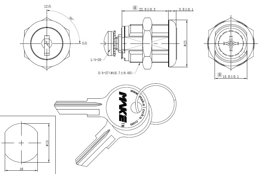 | 锁长(Z) | 18mm | 25.3mm | 31.5mm | 37.8mm | 43.5mm |
