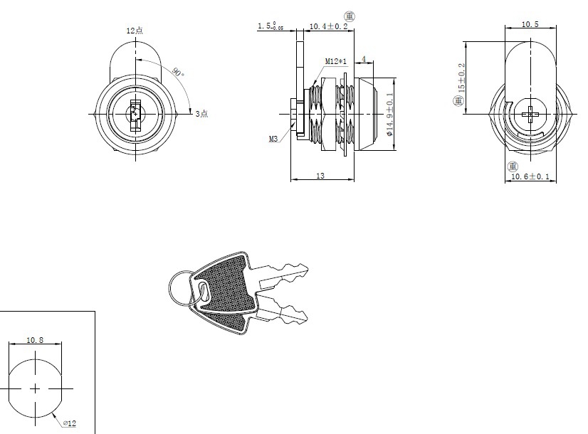 1、锁体迷你,钥匙较小,舌片也比普通转舌锁短,适用于小型箱柜