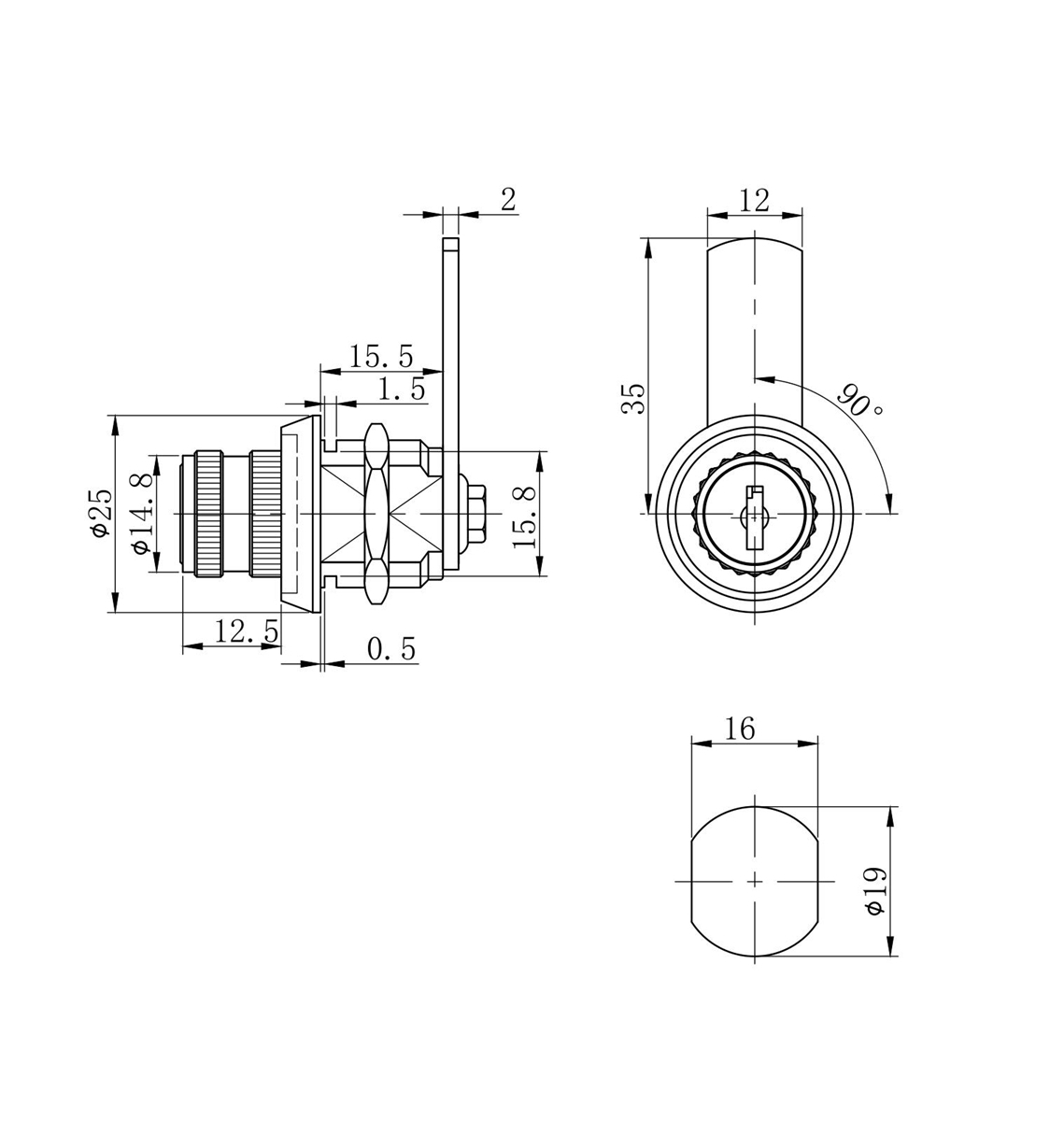 ●产品介绍 美科办公家具锁抽屉锁NK104-22,把手为齿轮设计,手感防滑顺畅,锌合金材质,安装便捷,安全性高,标准安装孔,适用范围广泛,常做为售货亭锁,档案柜锁,抽屉锁,储物柜锁等。