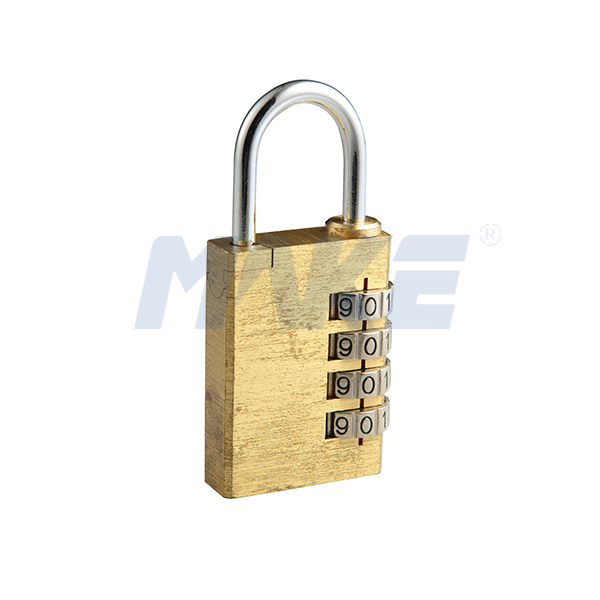 美科寄存柜锁四位密码挂锁MK711,方形造型,4位密码结构,管理钥匙可应急开锁,安全可靠。此款锁具铜拉丝表面设计,锁体全铜,锁梁碳钢材质,坚不可摧。经常做为档案柜锁,更衣柜锁,金