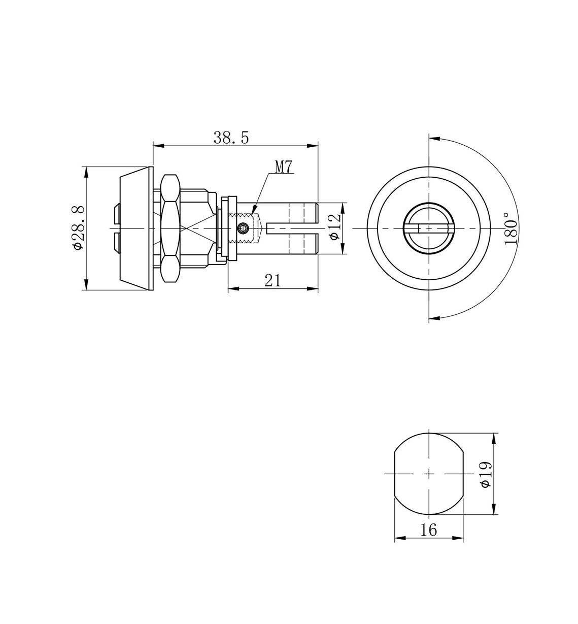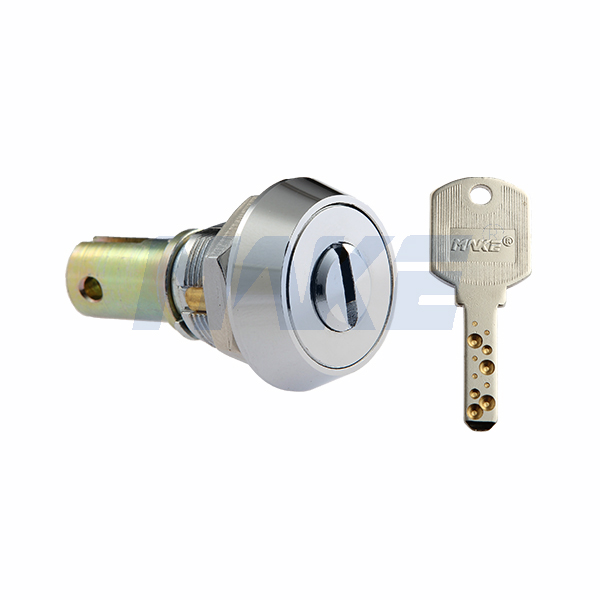 ●产品介绍 美科自动售货机锁自动贩卖机锁MK114-18,具有弹子钥匙系统,可旋转180°,带槽长杆,采用锌合金和铜制作而成,安装便捷,支持定制。此款锁具大小适中,适合在多种机箱上使用,例如售货亭锁,服务器锁,机箱机柜锁,无人售货机锁,智能终端锁等。