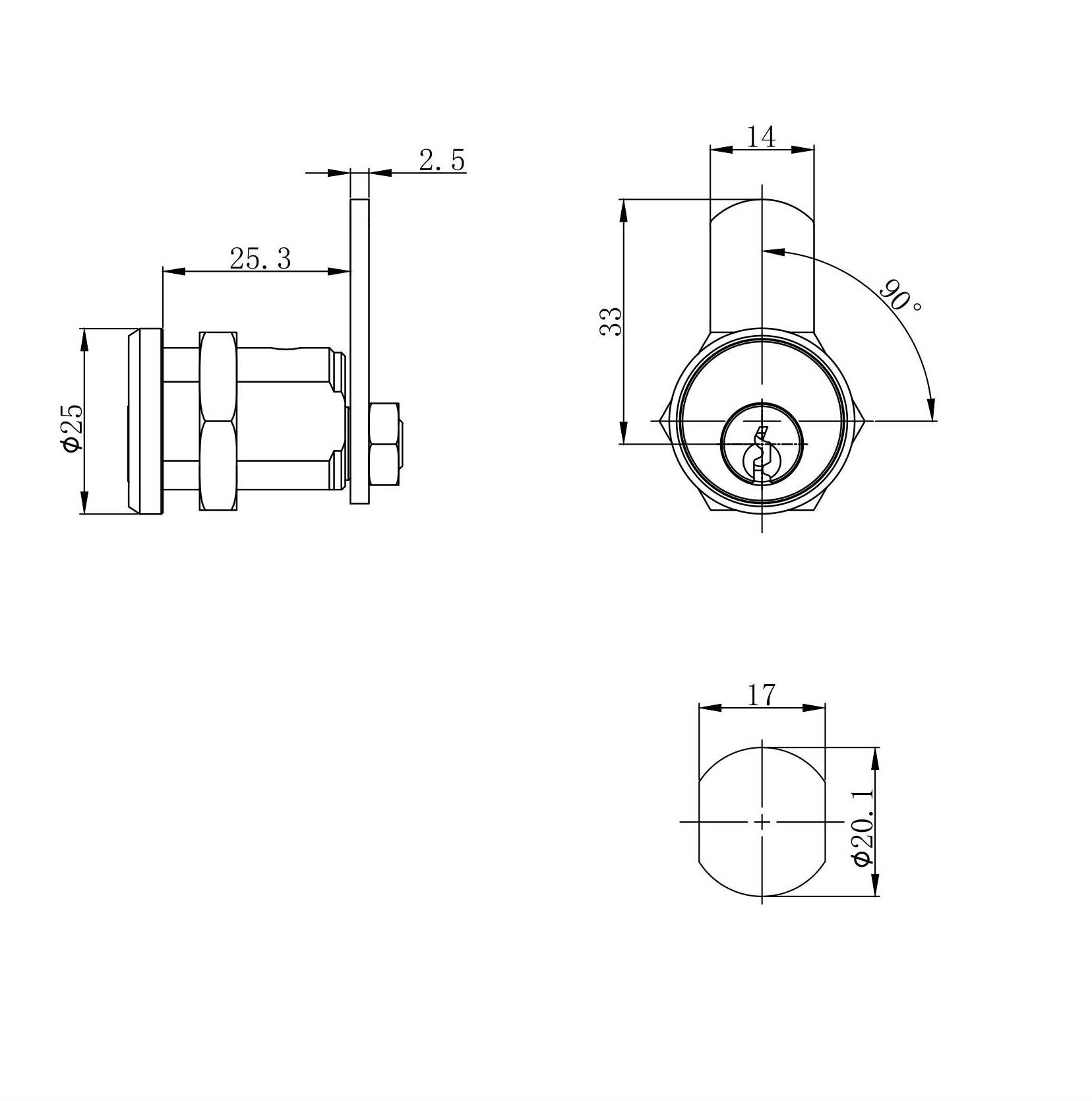 型号:MK114-22 材质:锌合金,铜 表面处理:亮铬、亮镍 钥匙牙花:10000以上 适用范围:智能终端,金融设备,机电设备,柜类,公用电话机,游戏机,地铁闸机,自动售货机,寄存柜